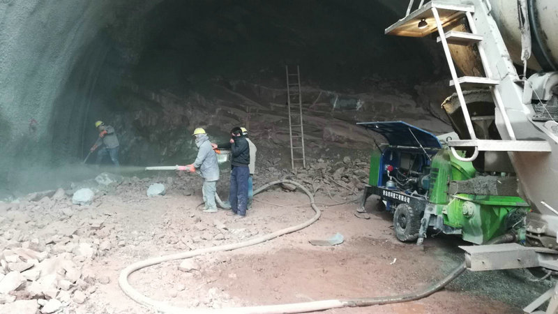 六、检查输送管是否清理干净,吹干后备用。将清洗球塞入出料口,反泵吸入,正泵挤出,这样可以高效清洗S管内部。湿喷机喷射作业完成后,将料斗中注入清水,清洗管道及料斗内残余的混凝土,必要时拆除输送管道,进行人工冲洗。